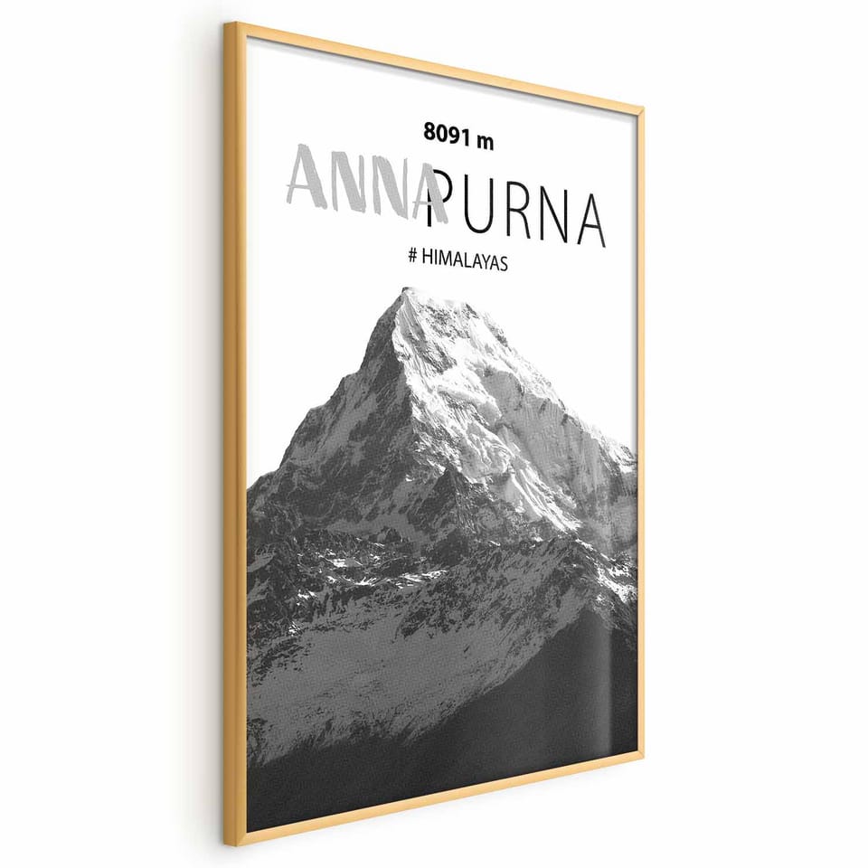 Plakat - Majestatyczny szczyt górski Annapurna korona gór pejzaż górski rozmiar 29.7x42, wykończenie Rama złota