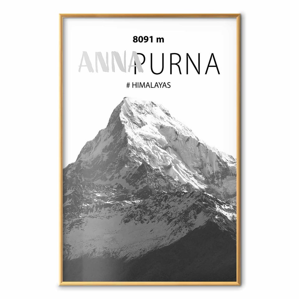 Plakat - Majestatyczny szczyt górski Annapurna korona gór pejzaż górski rozmiar 60x90, wykończenie Rama złota