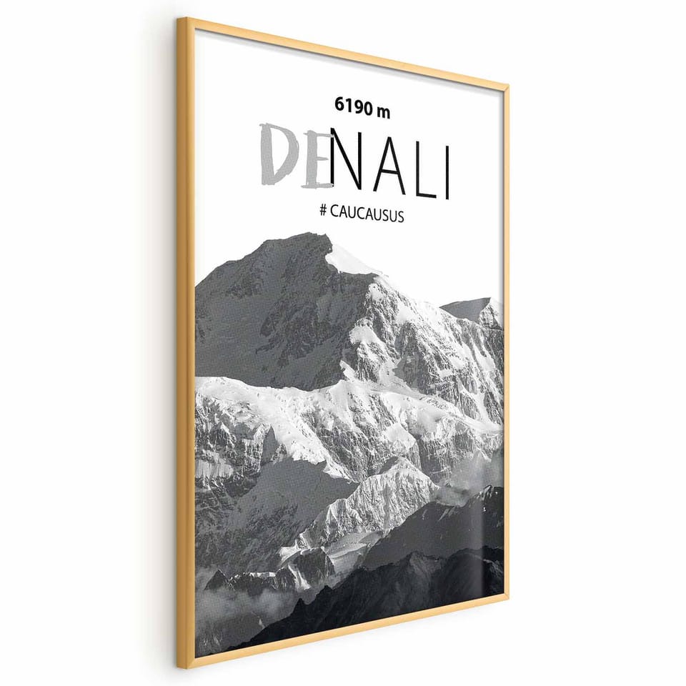 Plakat - Majestatyczny szczyt górski Denali korona gór pejzaż górski rozmiar 40x60, wykończenie Rama złota
