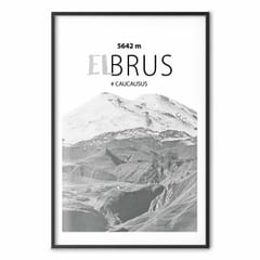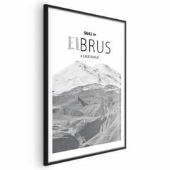 Plakat - Majestatyczny szczyt górski Elbrus korona gór pejzaż górski rozmiar 21x30, wykończenie Rama czarna z marginesem