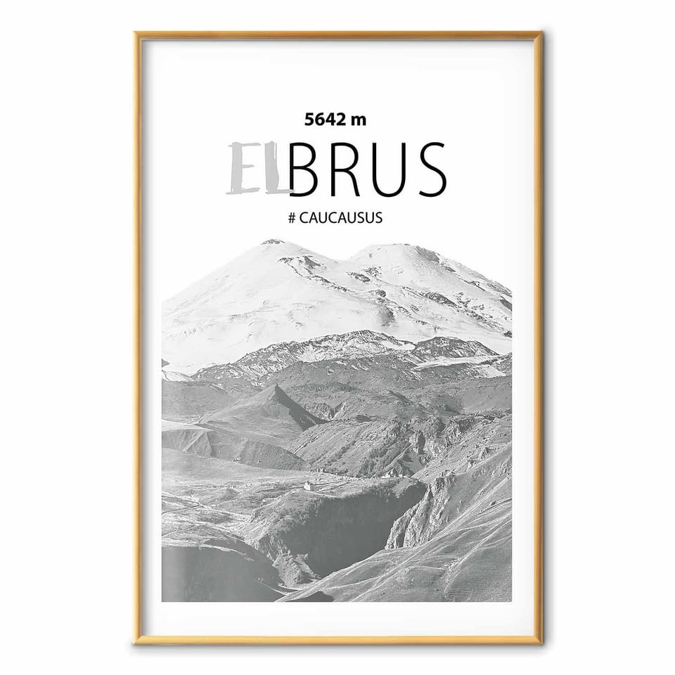 Plakat - Majestatyczny szczyt górski Elbrus korona gór pejzaż górski rozmiar 21x30, wykończenie Rama złota z marginesem