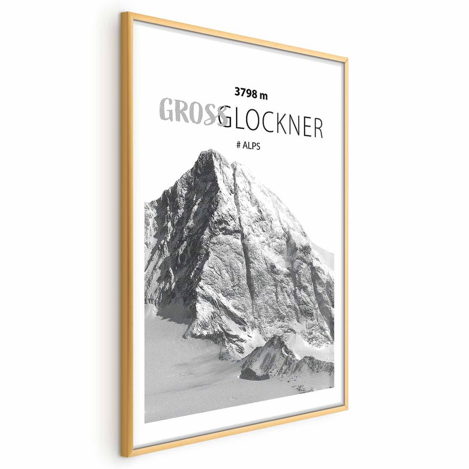 Plakat - Majestatyczny szczyt górski Glosslockner korona gór pejzaż górski rozmiar 29.7x42, wykończenie Rama złota z marginesem