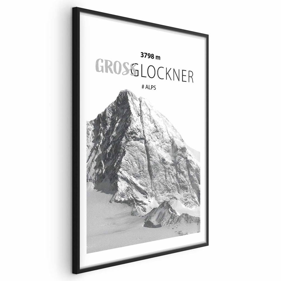 Plakat - Majestatyczny szczyt górski Glosslockner korona gór pejzaż górski rozmiar 40x60, wykończenie Rama czarna z marginesem