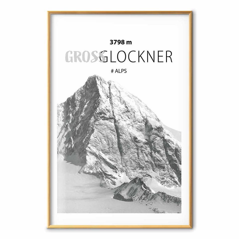 Plakat - Majestatyczny szczyt górski Glosslockner korona gór pejzaż górski rozmiar 40x60, wykończenie Rama złota z marginesem