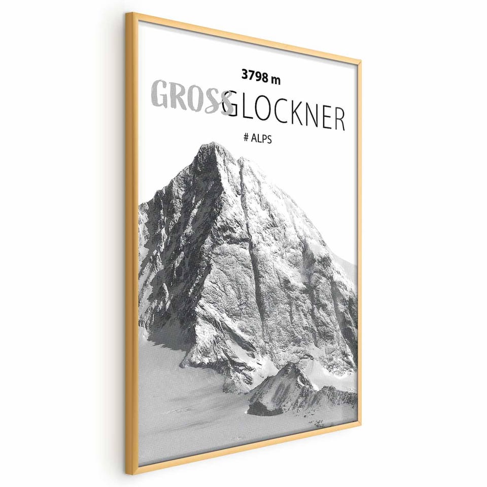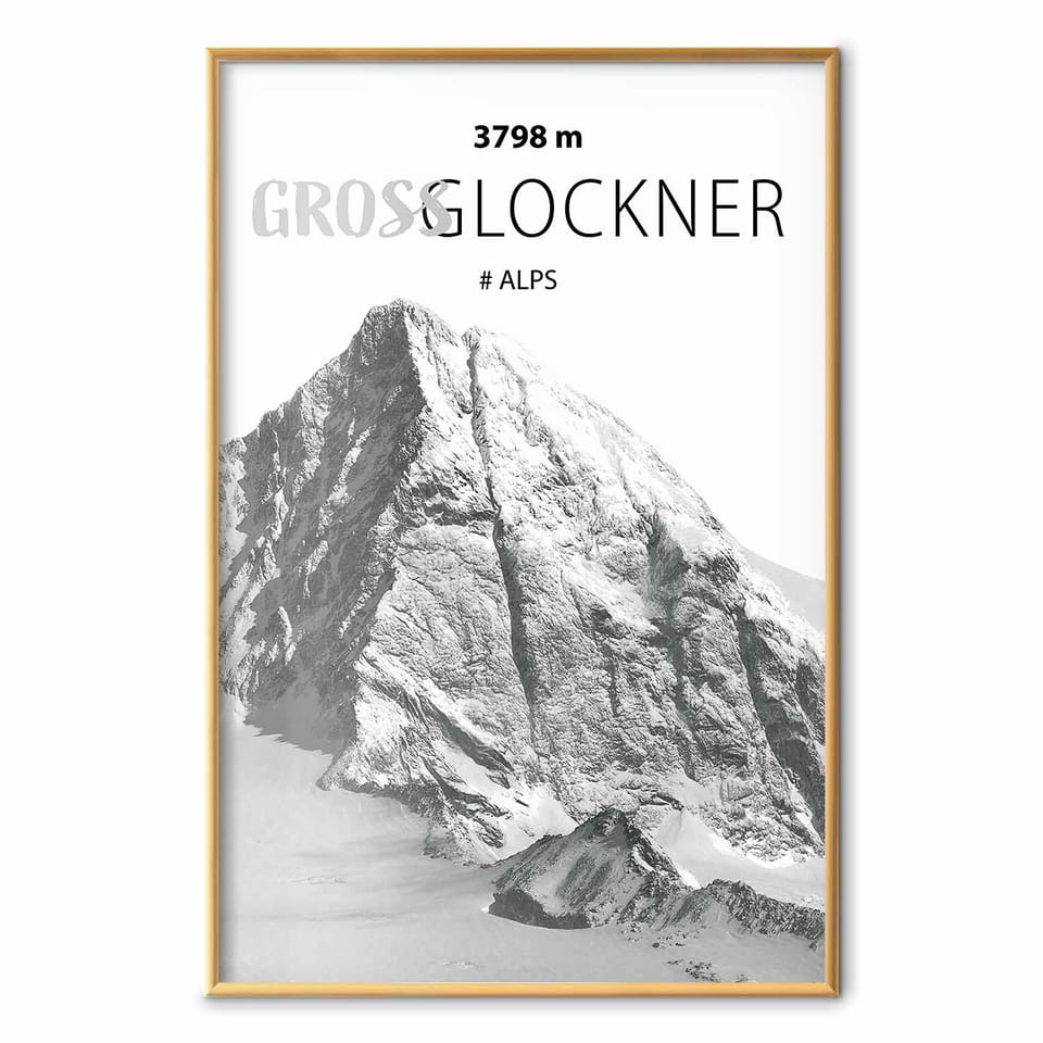Plakat - Majestatyczny szczyt górski Glosslockner korona gór pejzaż górski rozmiar 60x90, wykończenie Rama złota