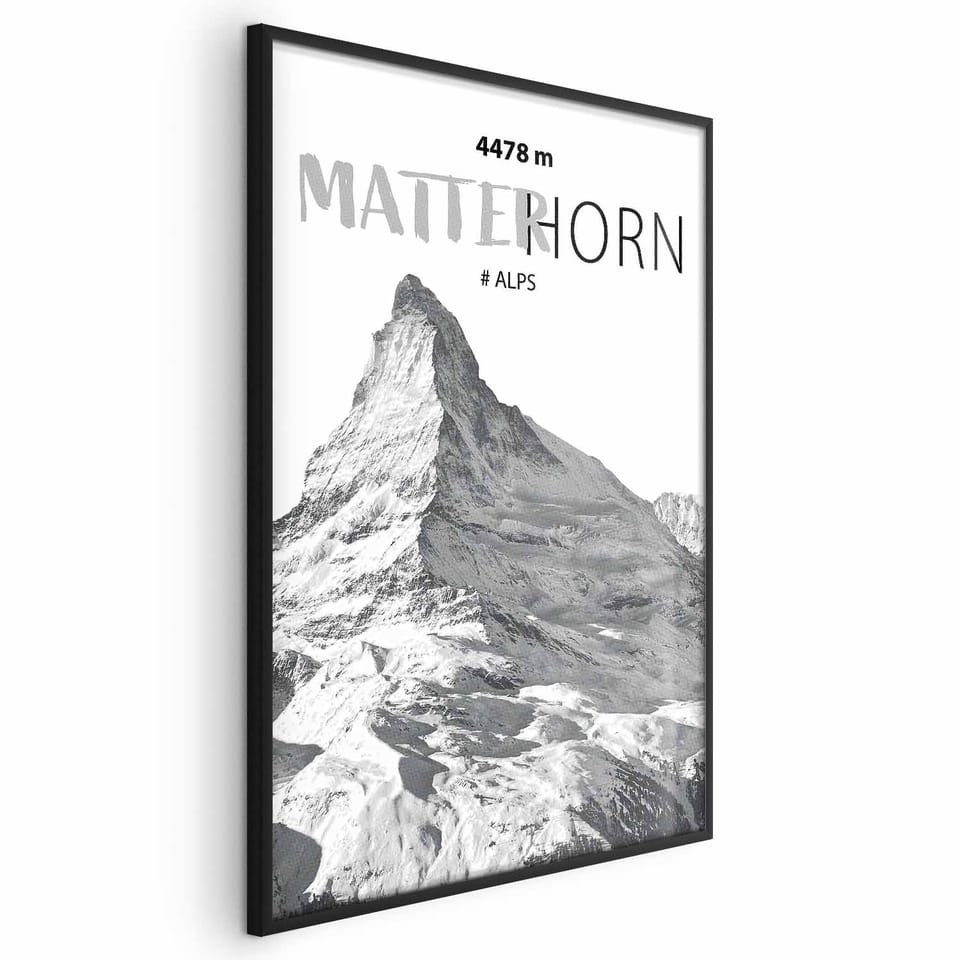 Plakat - majestatyczny szczyt górski Matterhorn korona gór pejzaż górski rozmiar 21x30, wykończenie Rama czarna