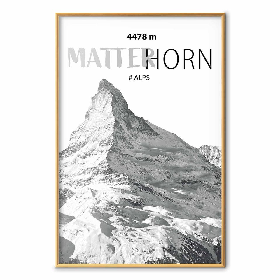 Plakat - majestatyczny szczyt górski Matterhorn korona gór pejzaż górski rozmiar 21x30, wykończenie Rama złota