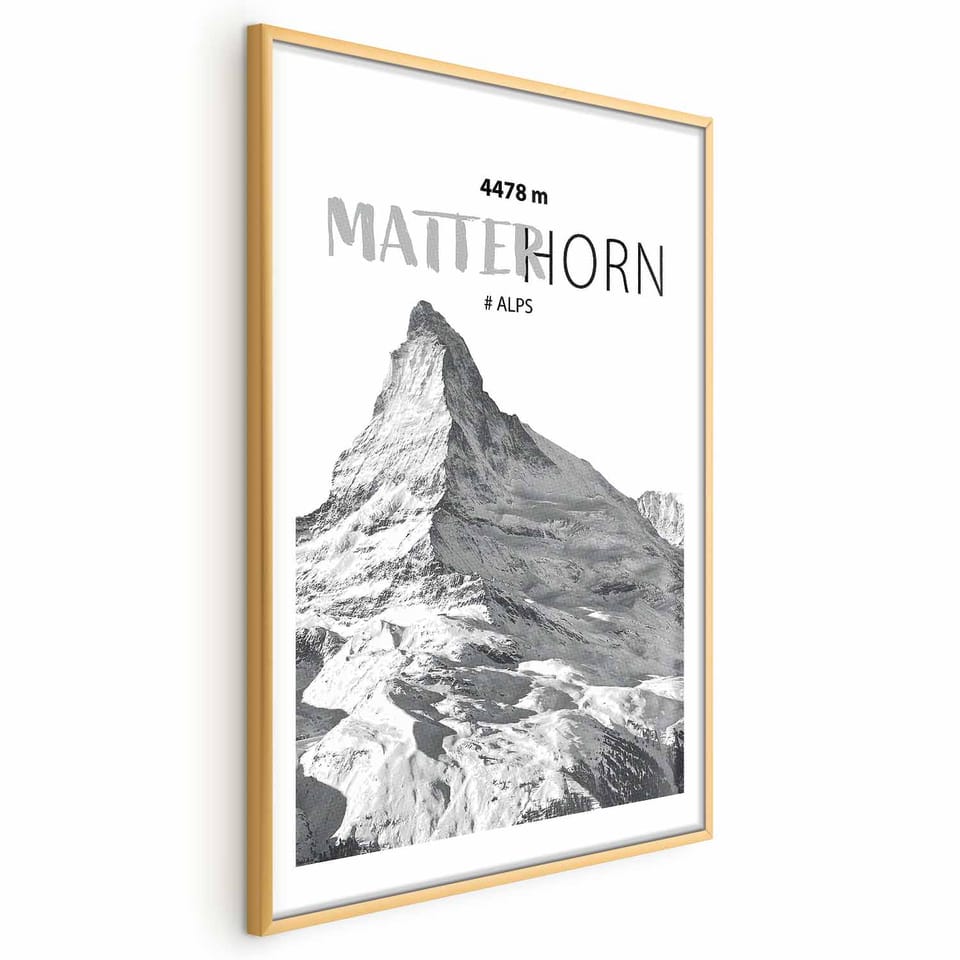 Plakat - majestatyczny szczyt górski Matterhorn korona gór pejzaż górski rozmiar 21x30, wykończenie Rama złota z marginesem