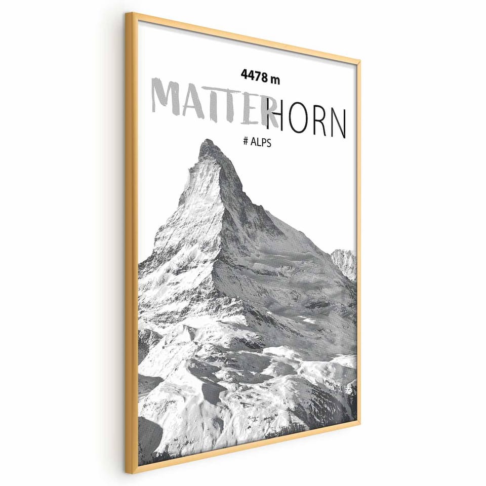 Plakat - majestatyczny szczyt górski Matterhorn korona gór pejzaż górski rozmiar 60x90, wykończenie Rama złota