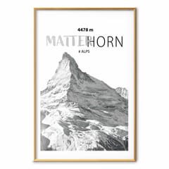 Plakat - majestatyczny szczyt górski Matterhorn korona gór pejzaż górski rozmiar 60x90, wykończenie Rama złota z marginesem