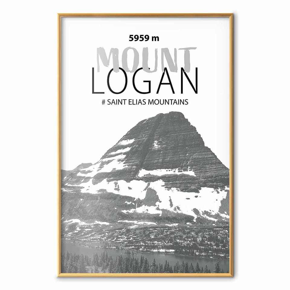 Plakat - Majestatyczny szczyt górski Mount Logan korona gór pejzaż górski rozmiar 21x30, wykończenie Rama złota
