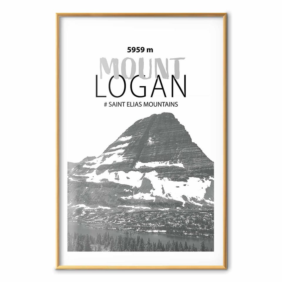 Plakat - Majestatyczny szczyt górski Mount Logan korona gór pejzaż górski rozmiar 60x90, wykończenie Rama złota z marginesem