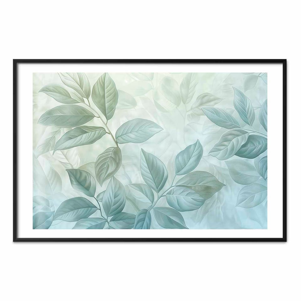 Plakat - Miętowe liście; duży botaniczny motyw rozmiar 90x60, wykończenie Rama czarna z marginesem