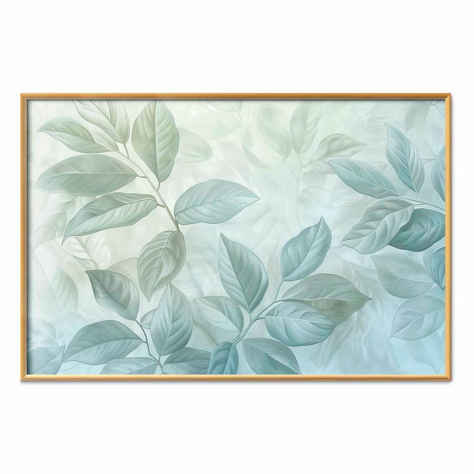 Plakat - Miętowe liście; duży botaniczny motyw rozmiar 90x60, wykończenie Rama złota