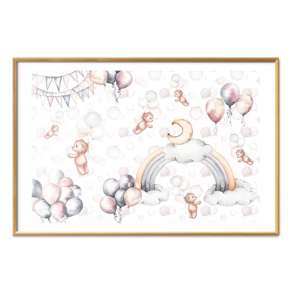 Plakat - Misie w przestworzach rozmiar 42x29.7, wykończenie Rama złota z marginesem