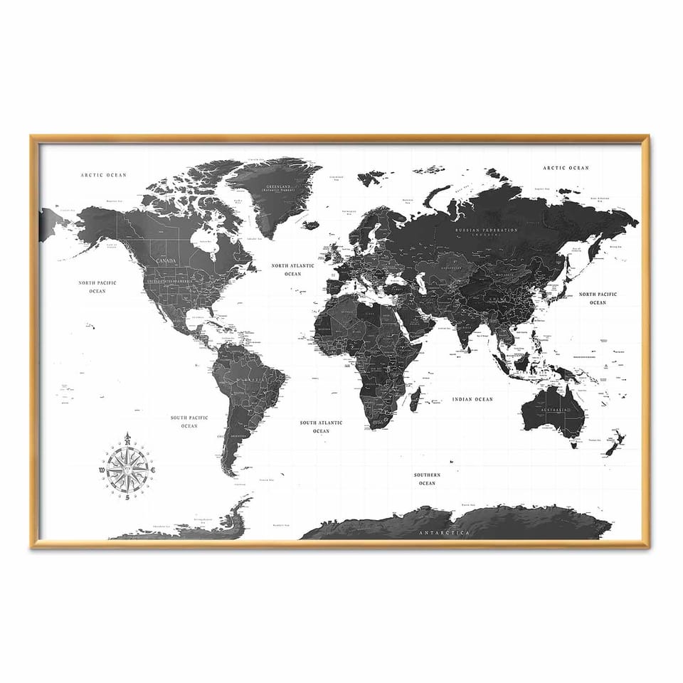Plakat - Monochromatyczna mapa rozmiar 60x40, wykończenie Rama złota