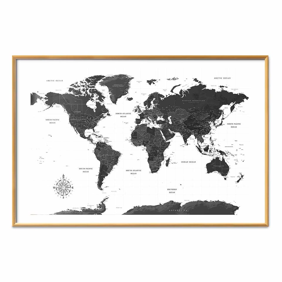Plakat - Monochromatyczna mapa rozmiar 60x40, wykończenie Rama złota z marginesem