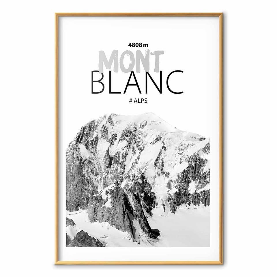 Plakat - Mont Blanc rozmiar 40x60, wykończenie Rama złota z marginesem