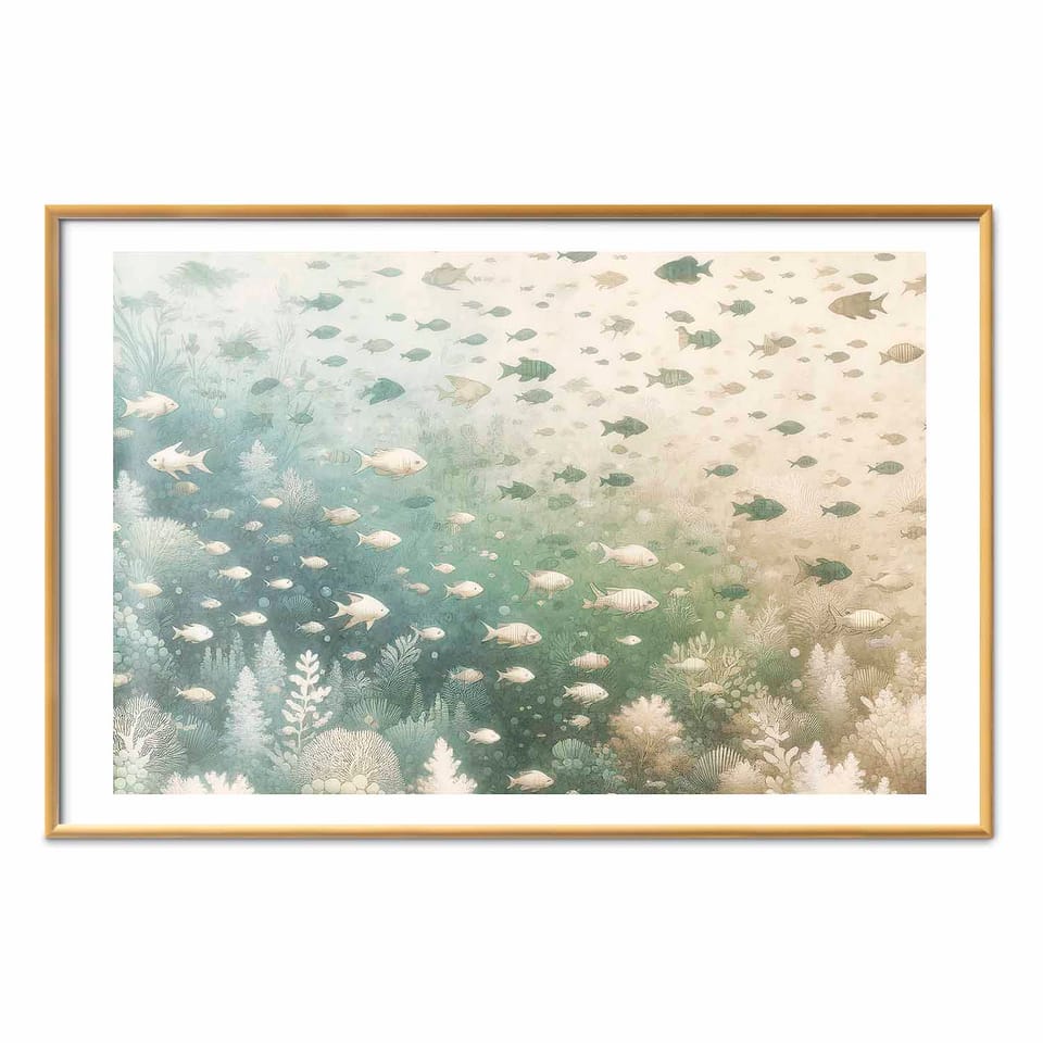 Plakat - Morski świat rozmiar 60x40, wykończenie Rama złota z marginesem