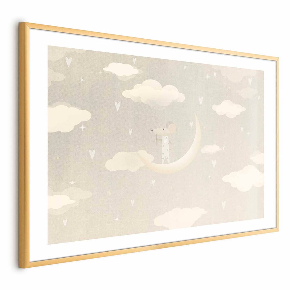 Plakat - Myszka na księżycu rozmiar 30x21, wykończenie Rama złota z marginesem