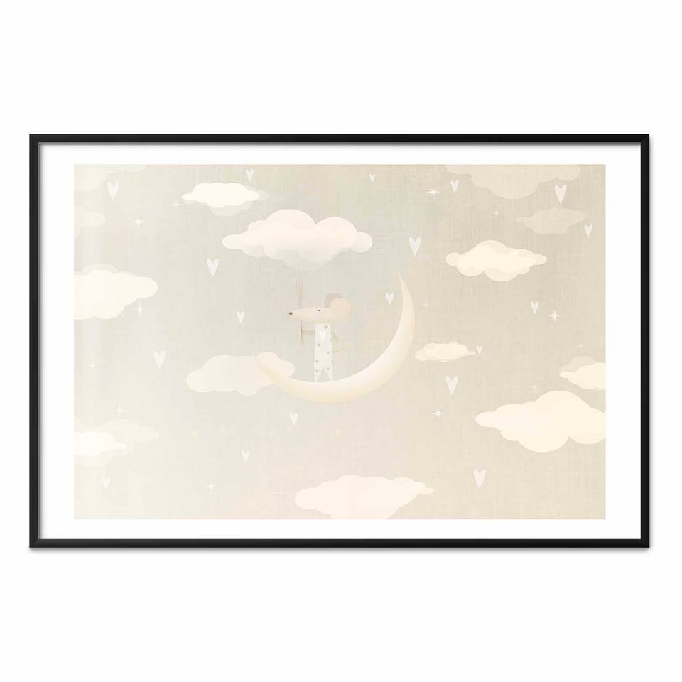 Plakat - Myszka na księżycu rozmiar 90x60, wykończenie Rama czarna z marginesem