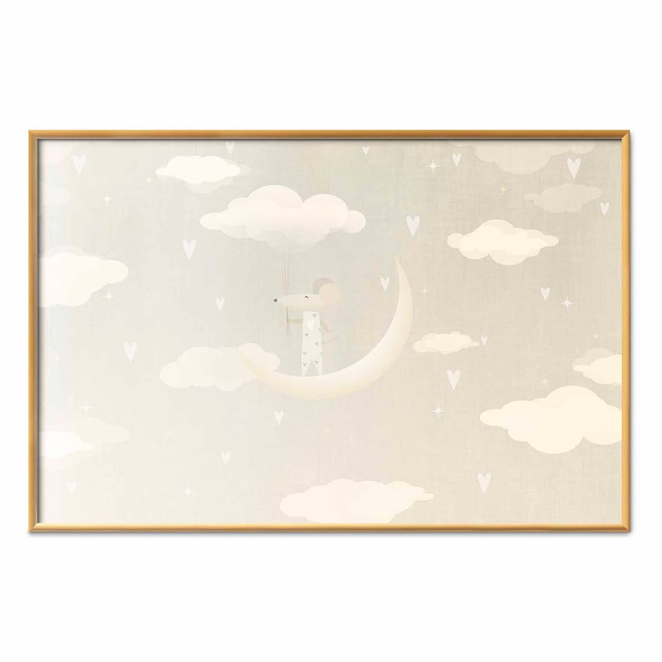 Plakat - Myszka na księżycu rozmiar 90x60, wykończenie Rama złota