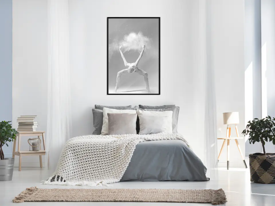 Plakat w ramie – wyrafinowany minimalizm Plakat jest oprawiony w minimalistyczną, lekką ramę, eksponującą go na tle ściany. Plakat jest zabezpieczony szkłem akrylowym, z tyłu ramy jest zamocowana zawieszka montażowa.