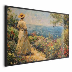 Plakat - Nostalgiczna impresja - zamyślona kobieta kontempluje krajobraz rozmiar 60x40, wykończenie Rama czarna