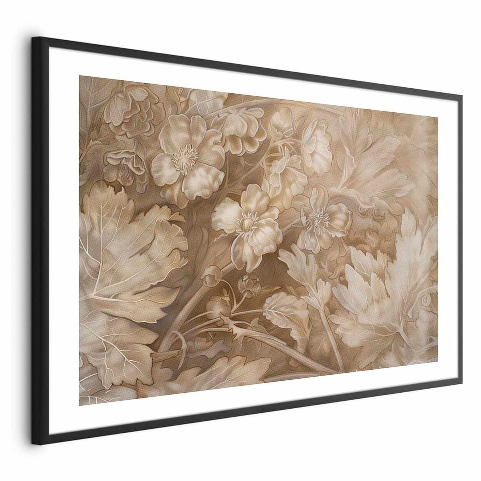 Plakat - Ornamenty roślinno-kwiatowe; rzeźbione rozmiar 60x40, wykończenie Rama czarna z marginesem