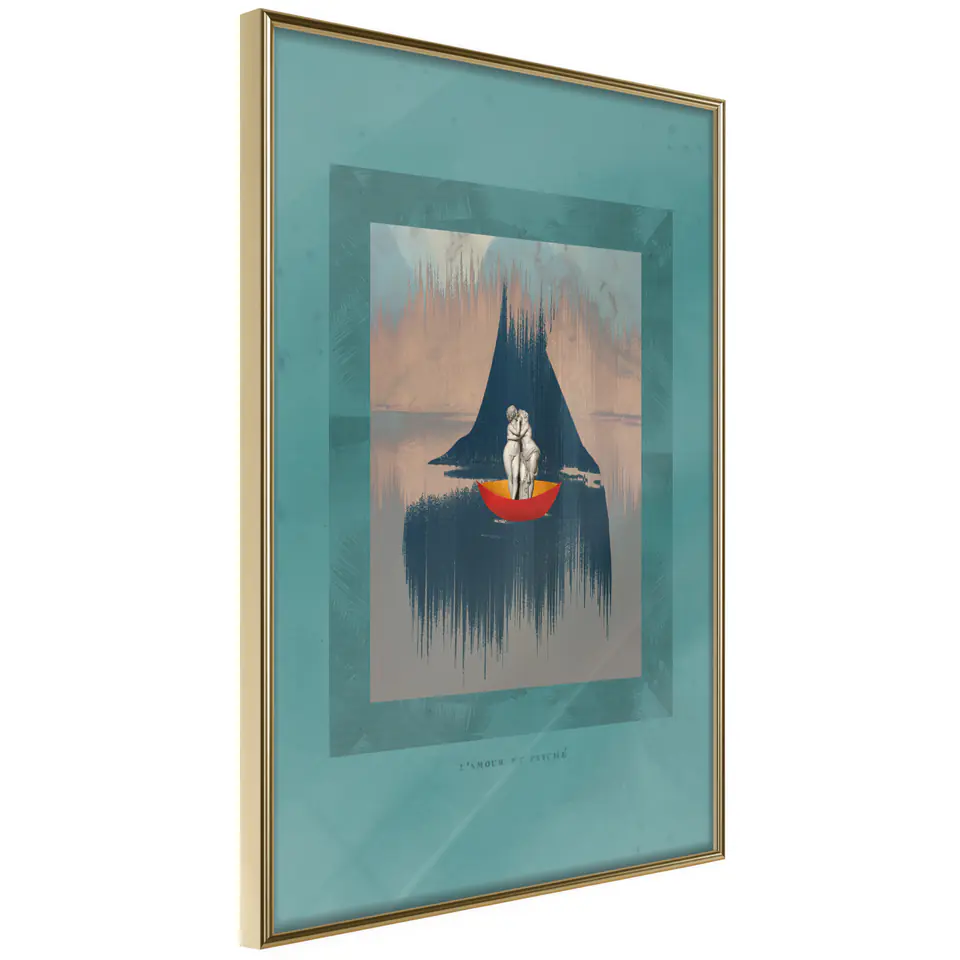 Plakat - Para na łodzi [Poster] rozmiar 20x30, wykończenie Rama złota