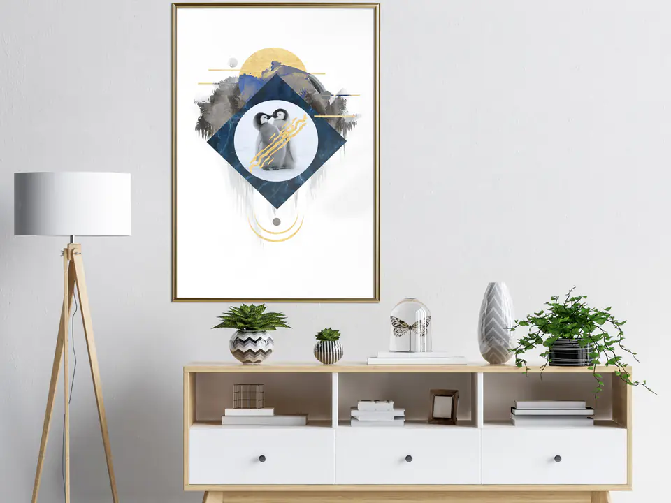 Plakat - Para pingwinów [Poster] rozmiar 30x45, wykończenie Rama złota