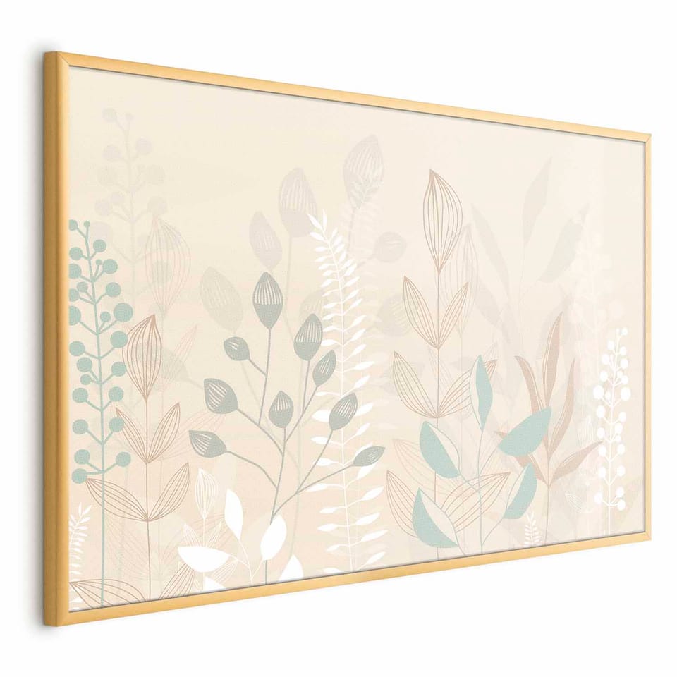 Plakat - Pastelowo - beżowa polana rozmiar 60x40, wykończenie Rama złota