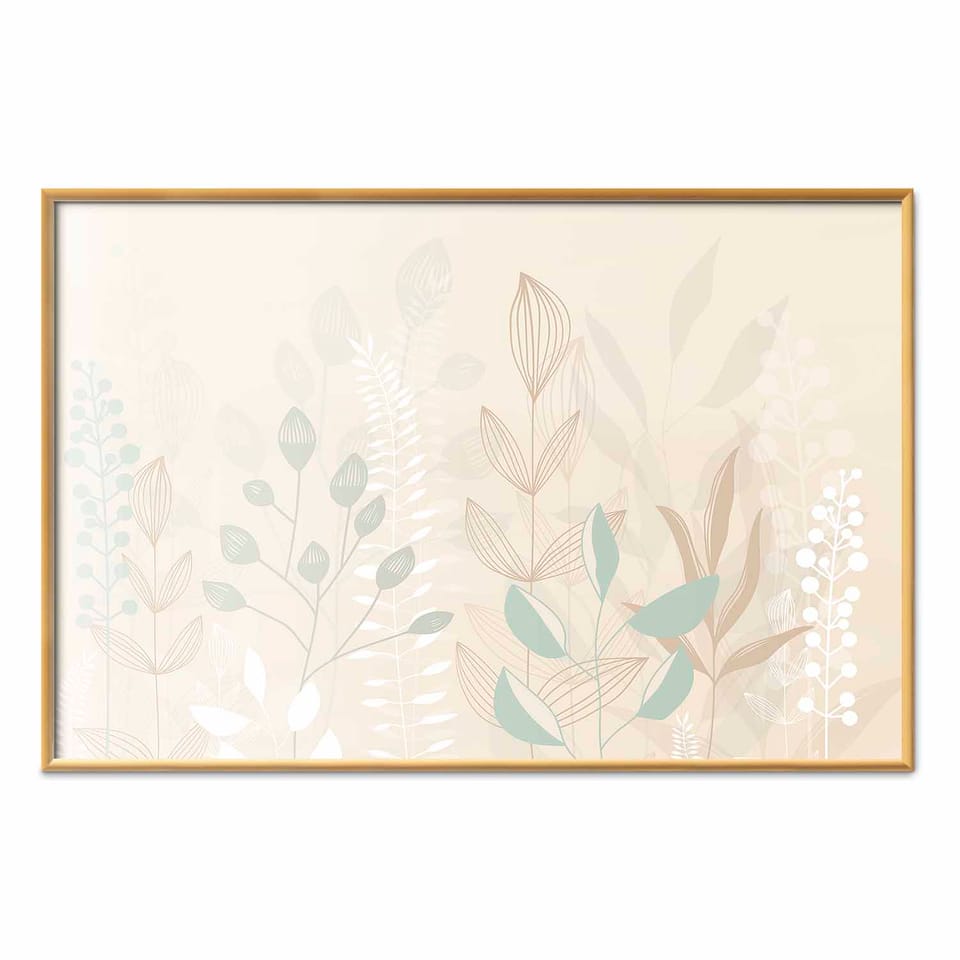 Plakat - Pastelowo - beżowa polana rozmiar 90x60, wykończenie Rama złota