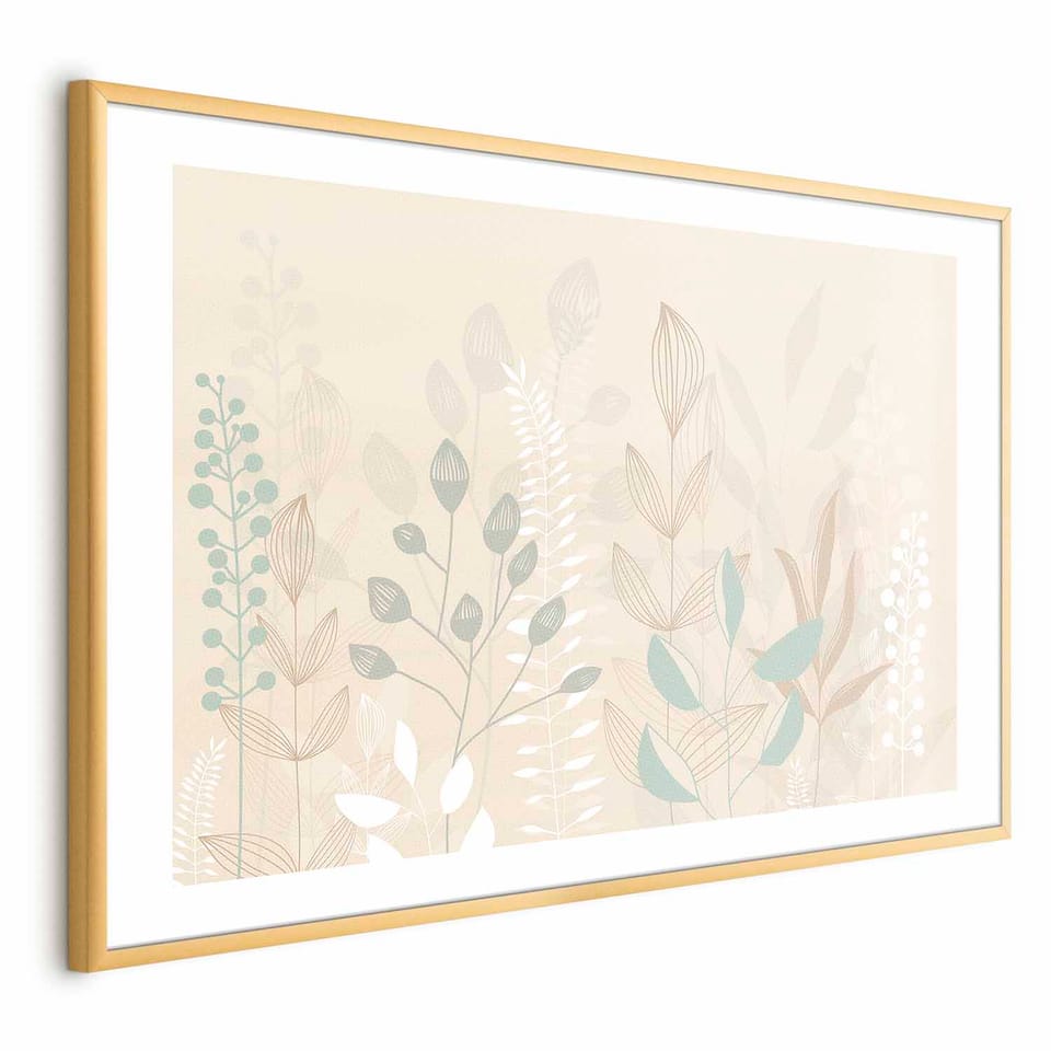 Plakat - Pastelowo - beżowa polana rozmiar 90x60, wykończenie Rama złota z marginesem