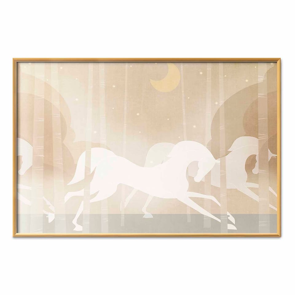 Plakat - Pędzące rumaki rozmiar 90x60, wykończenie Rama złota