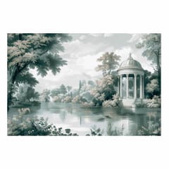 Plakat - Pejzaż z parkiem i jeziorem w retro zieleniach rozmiar 30x21, wykończenie Bez ramy