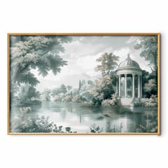 Plakat - Pejzaż z parkiem i jeziorem w retro zieleniach rozmiar 42x29.7, wykończenie Rama złota