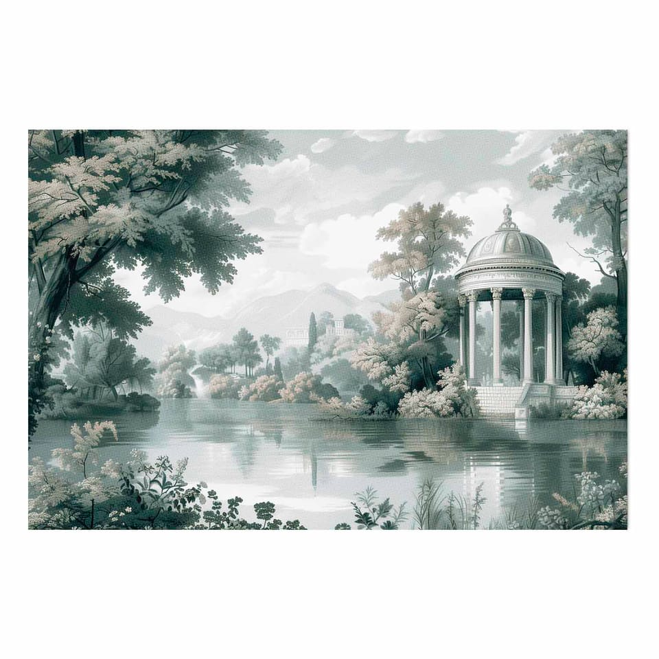 Plakat - Pejzaż z parkiem i jeziorem w retro zieleniach rozmiar 60x40, wykończenie Bez ramy