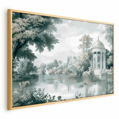 Plakat - Pejzaż z parkiem i jeziorem w retro zieleniach rozmiar 60x40, wykończenie Rama złota