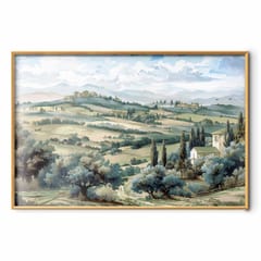 Plakat - Pejzaż ze słonecznymi; zielonymi polami rozmiar 42x29.7, wykończenie Rama złota