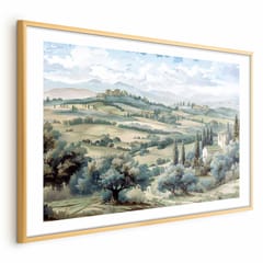Plakat - Pejzaż ze słonecznymi; zielonymi polami rozmiar 42x29.7, wykończenie Rama złota z marginesem