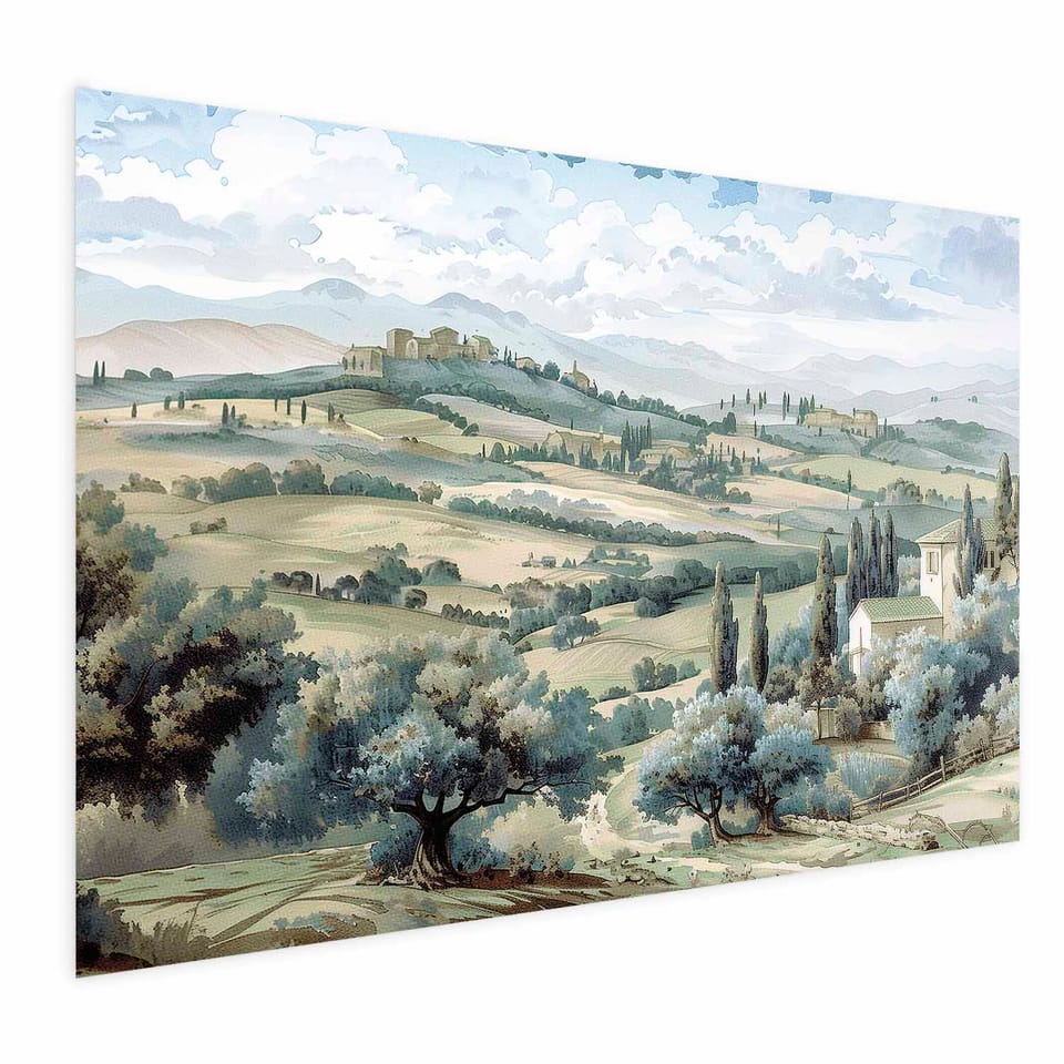 Plakat - Pejzaż ze słonecznymi; zielonymi polami rozmiar 60x40, wykończenie Bez ramy z marginesem