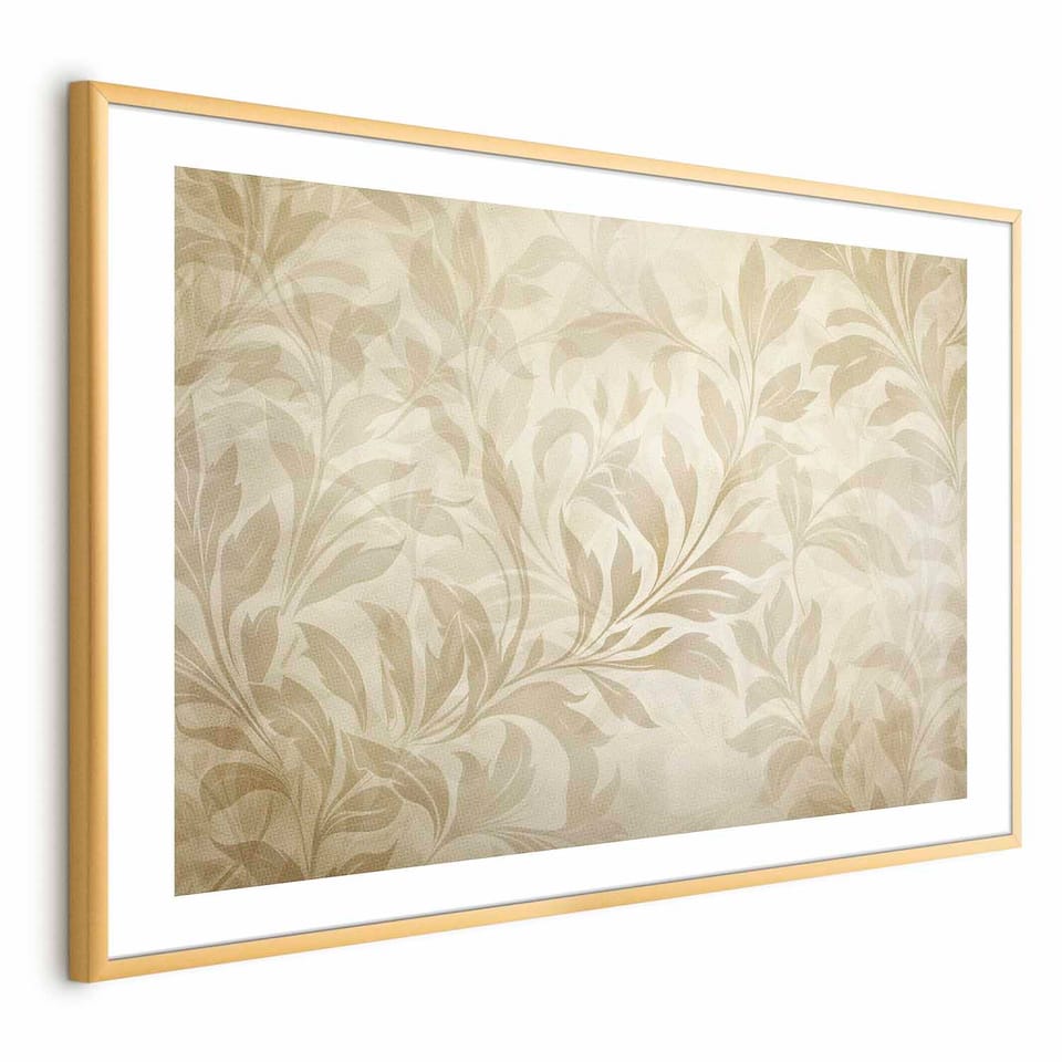 Plakat - Piaskowe listki i pnącza rozmiar 30x21, wykończenie Rama złota z marginesem