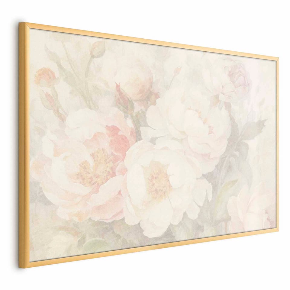 Plakat - Piwonie we mgle rozmiar 42x29.7, wykończenie Rama złota
