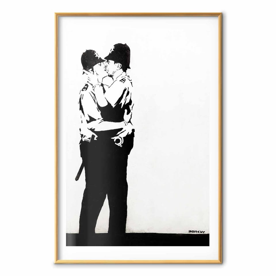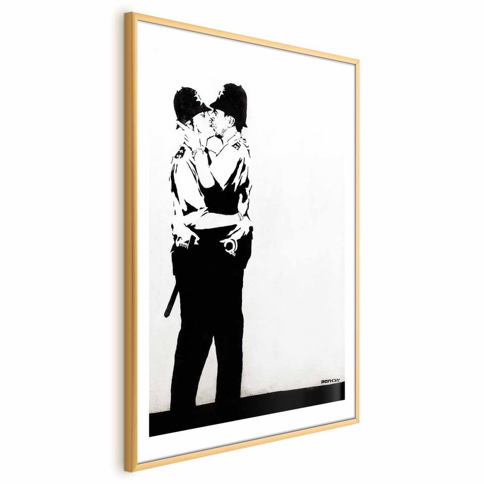 Plakat - Pocałunek policjantów rozmiar 60x90, wykończenie Rama złota z marginesem