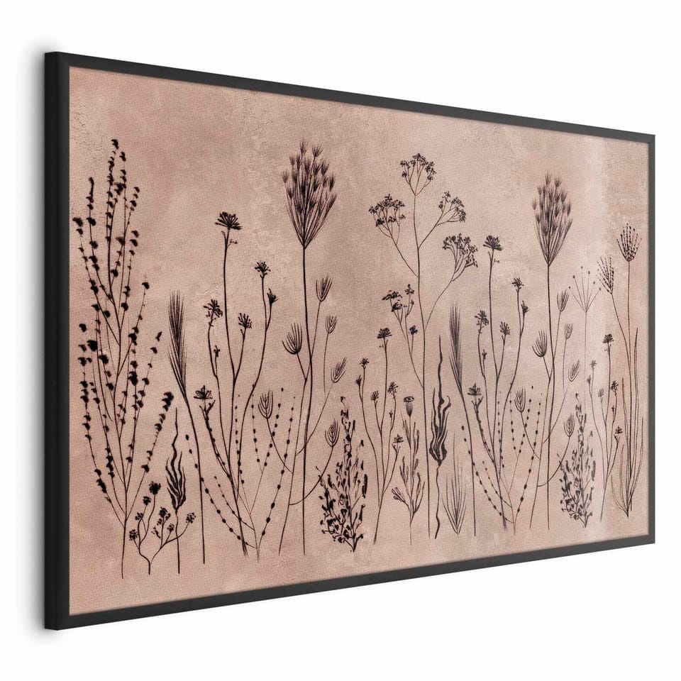 Plakat - Polne kwiaty - czarne rośliny na tle w technice lime wash rozmiar 30x21, wykończenie Rama czarna