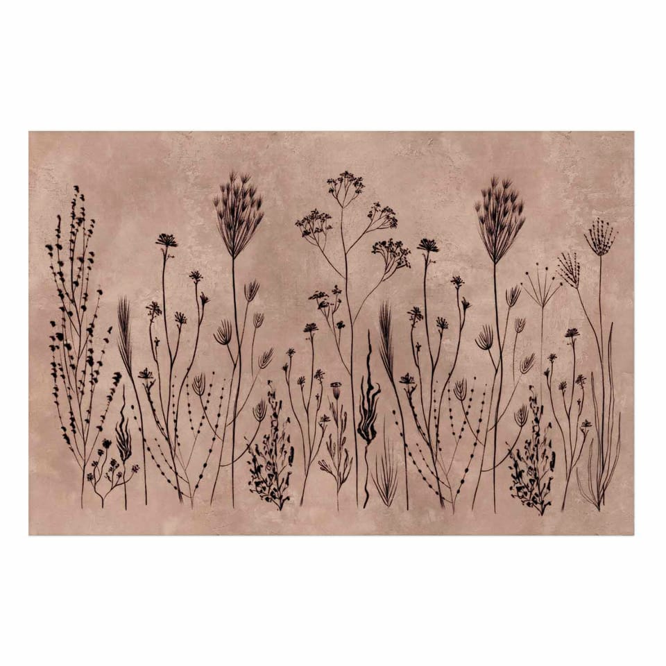 Plakat - Polne kwiaty - czarne rośliny na tle w technice lime wash rozmiar 42x29.7, wykończenie Bez ramy