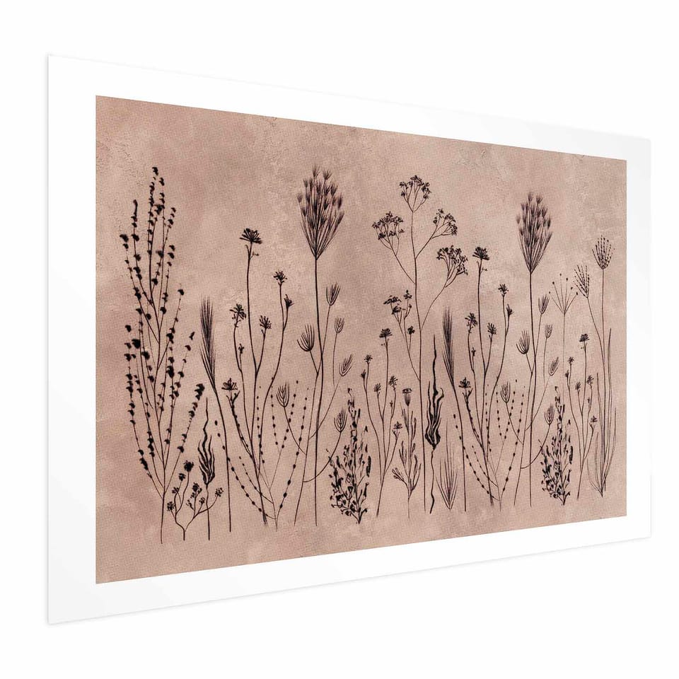 Plakat - Polne kwiaty - czarne rośliny na tle w technice lime wash rozmiar 42x29.7, wykończenie Bez ramy z marginesem