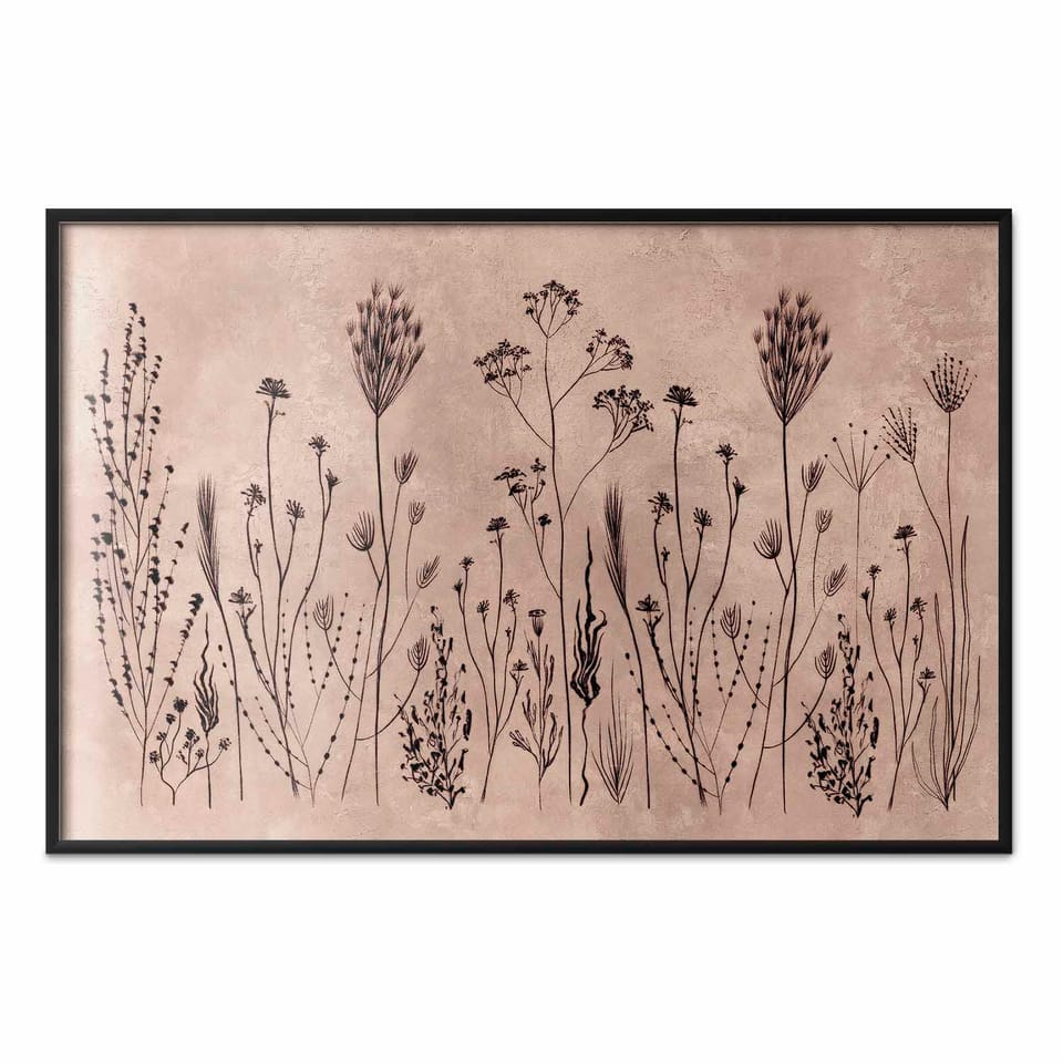 Plakat - Polne kwiaty - czarne rośliny na tle w technice lime wash rozmiar 60x40, wykończenie Rama czarna