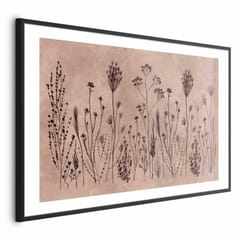 Plakat - Polne kwiaty - czarne rośliny na tle w technice lime wash rozmiar 60x40, wykończenie Rama czarna z marginesem